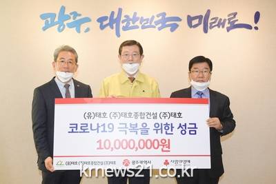 먼저 대한건설협회 광주시회, ㈜태호종합건설과의 기부금 전달식에서 이용섭 시장은 김영주 대한건설협회 광주시회장 겸 ㈜태호종합건설 대표이사로부터 2000만원(대한건설협회 1000만원, ㈜태호종합건설 1000만원)의 기부금을 전달받았다.