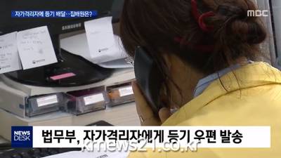 ▲ [사진출처 = MBC뉴스 캡처]법무부가 신종 코로나바이러스 감염증(코로나19)와 관련해 자가격리자 중인 1,400여명에게 출국금지를 요청하는 등기우편을 보낸 것을 두고 비난의 목소리가 나왔다. 외부인과의 접촉이 금지된 코로나19 자가격리자에게 등기우편 방식으로 출국금지를 통보하는 건은 상식에 맞지 않을 뿐더러 정작 배송하는 집배원들은 자가격리자와 대면해야 한다는 이 사실을 알지도 못했기 때문이다.