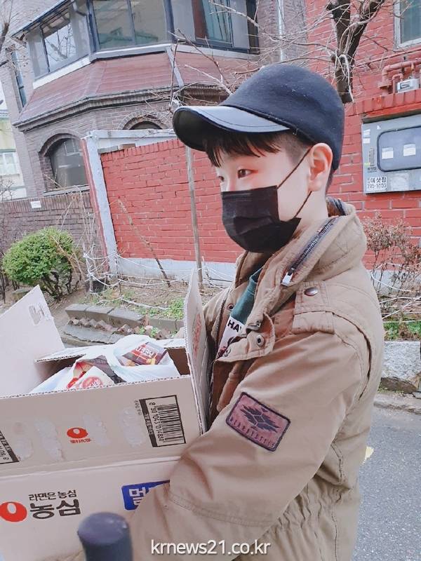 ▲ 수원시 팔달구 고등동에 살고 있는 한민준군이 팔달구보건소로 간식을 보내는 모습