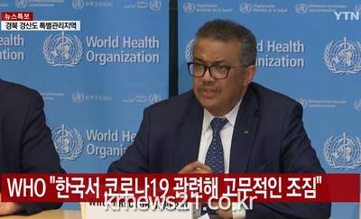 ▲ [사진출처 = YTN 뉴스 캡처]세계보건기구(WHO)는 5일(현지시간) 신종 코로나바이러스 감염증(코로나19)과 관련해 "한국에서 고무적인 조짐을 보고 있다"고 밝혔다.