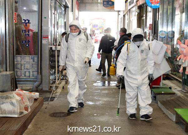 운영 첫날인 6일에는 중앙 및 한내, 동부, 현대시장 등 4개 전통시장 일원에서 김동일 시장과 공무원 등이 참여한 가운데 골목과 공중화장실 등지에서 분무소독기를 이용한 살균 소독을 실시했고, 분무기 미 소지자는 상가 주변 및 본인가게 출입문 등에 대한 자체소독을 진행했다.