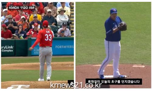 ▲ [사진출처 = 앰플뉴스 캡처]미국 프로야구 메이저리그(MLB)에 새로운 둥지를 튼 류현진(33·토론토 블루제이스)과 김광현(32·세인트루이스 카디널스)이 이적 후 처음으로 같은 날 선발 등판해 나란히 호투하며 승리투수가 됐다.