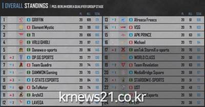한편 치열했던 16위 싸움은 단 1포인트 차이로 갈렸다. 그룹 스테이지 1주 차에 22위를 기록한 Michael이 최종 72 킬 94포인트로 16위에 오른 가운데 emTek StormX e-sports가 70 킬 93포인트로 파이널 스테이지 진출에 실패했다.