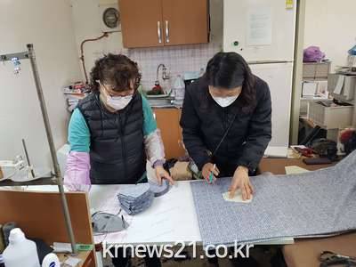 ▲ [사진제공 = 영양군]영양군지역사회보장협의체(공동위원장 오도창, 오운석)에서는 3월 9일부터 관내 코로나19 감염고위험군 취약계층에게 필터를 교체할 수 있는 수제마스크 700개를 제작해서 지원한다.