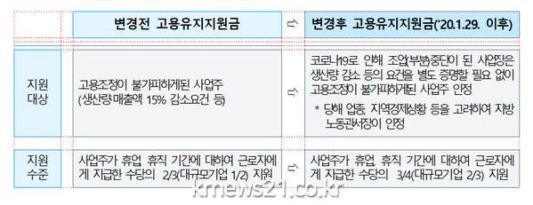 또한 고용보험 홈페이지(www.ei.go.kr)에서도 신청이 가능하며 추진기간은 「국가 감염병 위기경보」 해제 시 까지이다.(문의 전화 1350)