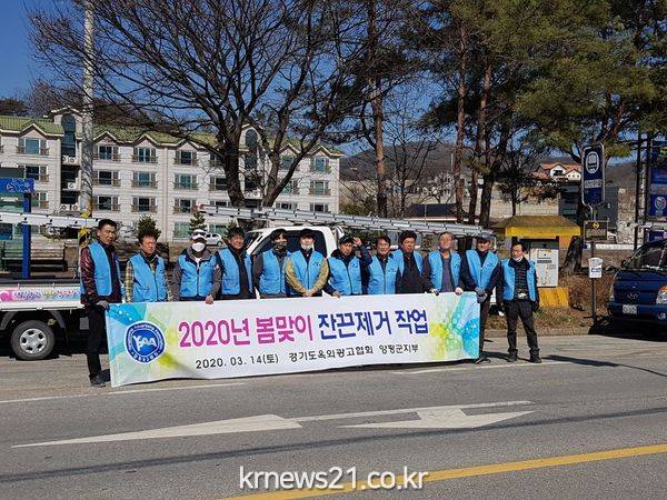 이날 일제정비는 양평군 및 양평광고협회 회원 20여 명이 참여해 불법으로 게시된 현수막을 제거 한 뒤 노끈, 철사, 벽보 등의 잔재물이 남아 차량과 사다리 등 장비를 동원해 가로등, 전신주, 전봇대 등에 남아있는 잔재물 500L 가량을 말끔히 제거했다.