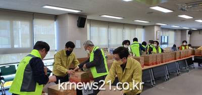 ▲ [사진제공 = 남양주시]화도수동행정복지센터(센터장 박부영)는 지난 13일 화도읍 지역사회보장협의체(위원장 강희부)와 함께 코로나19 감염에 취약한 고혈압, 당뇨, 신장장애, 호흡기질환 등 기저질환을 앓고 있는 저소득 취약계층 102세대에게 ‘건강돌봄꾸러미’를 지원했다.