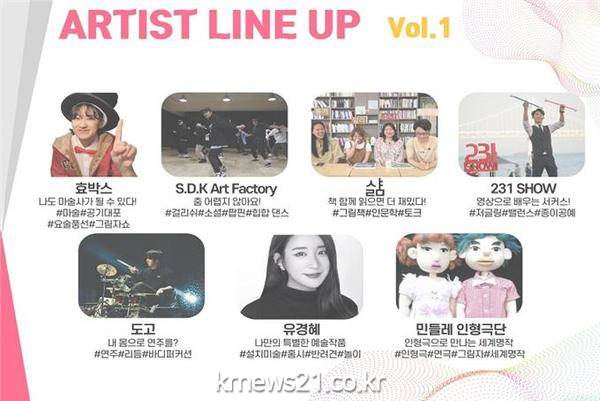 이번 프로젝트는 부산시와 부산문화재단이 함께 기획하고 지역 청년예술가의 참여로 진행되며, ▲나도 마술사가 될 수 있다!(쇼박스) ▲춤 어렵지 않아요! (S.D.K Art Factory) ▲책 함께 읽으면 더 재밌다!(샮) ▲영상으로 배우는 서커스(231 SHOW) 등 총 54편의 리스트 업을 마쳤다.