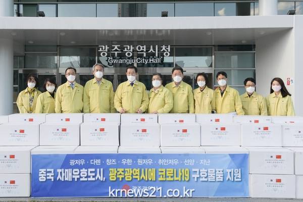 광주시는 광저우시 등 중국 7개 자매·우호협력도시와 지난시에서 39만여점의 방역물품을 지원하겠다는 의사를 보내왔다고 19일 밝혔다.