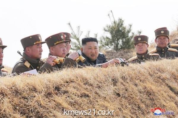 김정은 국무위원장은 전날인 20일 서부전선대연합부대의 포사격대항경기를 지도했다.
