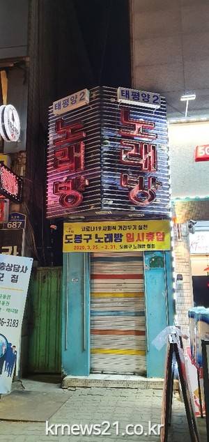도봉구 노래방협회장은 “경기 침체로 어려움을 겪고 있는 가운데서도 바이러스 확산 방지에 앞장서야 한다는 사회적 요구와 범정부적 사회적 거리두기 캠페인에 동참하고자 운영 중단을 결정했다.”고 말했다.