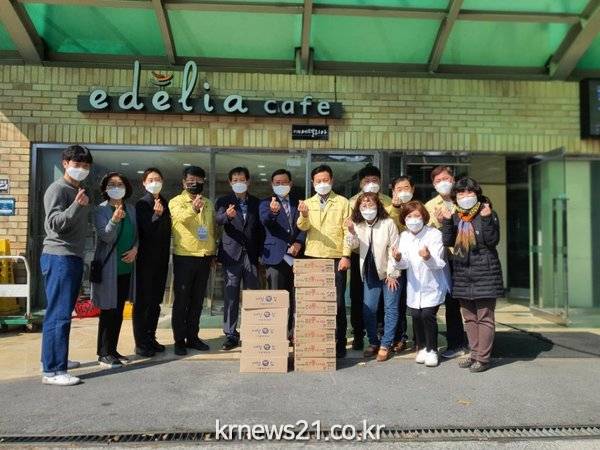 박정민 목사를 비롯한 8명의 신도들은 지난 25일 제천 내 생활치료센터 2개소와 천 마스크를 제작하는 여성문화센터, 시니어클럽 그리고 제천시보건소를 방문하여 떡과 음료 등의 간식을 전달했다.