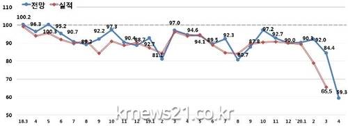 한경연은 이동제약으로 소비가 위축된 데다가 조업차질로 인한 공급 충격이 겹치면서 기업체감경기는 금융위기 때 보다 심각한 수준이라고 말했다.