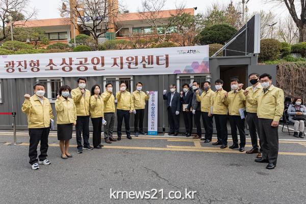 광진구(구청장 김선갑)가 4월 1일‘광진형 긴급운영자금’을 원스톱으로 지원하는‘광진형 소상공인 지원센터’를 구청 주차장에 설치해 운영에 들어갔다.