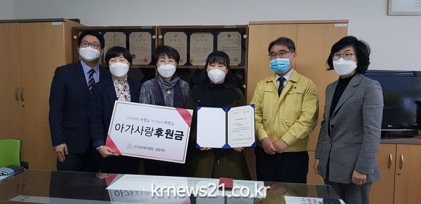 횡성군는 4월 7일(화) 오전 10시 30분 횡성군보건소에서 인구보건복지협회 강원지회로부터 지원받은 아가사랑 후원금 200만원을 희귀난치질환을 앓고 있는 홍군(10개월, 횡성읍 거주) 가족에게 전달했다.