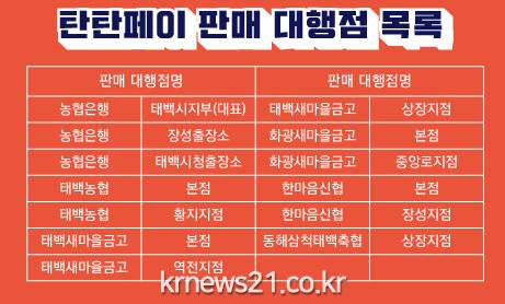 보다 자세한 사항은 오늘(8일) 오전 9시 이후 탄탄페이 고객센터(☎1811-6663) 또는 태백시청 마케팅전담T/F팀(☎033-550-2018)으로 문의하면 된다.