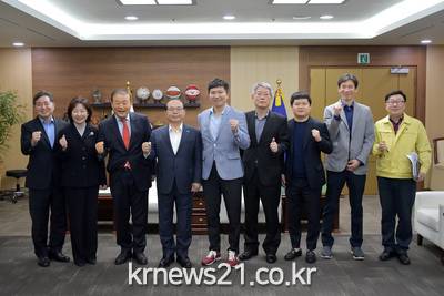 ▲ [사진제공 = 부산시]부산시(시장 오거돈) 오는 6월 21일부터 28일까지 열릴 예정이던 부산세계탁구선수권대회를 9월로 연기하자는 국제탁구연맹의 공식 제안에 대해 대회 공동조직위원장인 오거돈 부산광역시장과 유승민 대한탁구협회장이 7일 오후 부산시청 접견실에서 수용 여부를 논의한 끝에 ‘부산세계탁구선수권대회 개최를 9월 27일로 3개월 가량 연기한다’고 공식 발표했다.