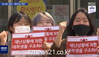 ▲ [사진출처 = MBC뉴스 캡처]신종 코로나바이러스 감염증(코로나19) 사태가 장기화되자 대학생들의 불만이 터져나오고 있는 가운데, 정부와 대학은 등록금 일부를 장학금 명목으로 학생들에게 돌려주는 방안으로 가닥을 잡아가고 있다.