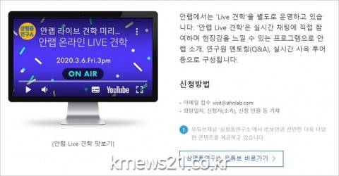 ▲ [이미지제공 = 안랩]안랩(대표 강석균)이 견학 현장을 직접 방문하지 않고도 온라인으로 견학이 가능한 ‘라이브(Live) 견학’ 페이지를 오픈한다.
