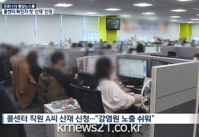 ▲ [사진출처 = KBS뉴스 캡처]신종 코로나바이러스 감염증(코로나19) 집단감염 사태가 발생한 구로구 신도림역 콜센터에서 일하던 노동자가 국내에서 처음으로 코로나19에 의한 산업재해 인정을 받았다.