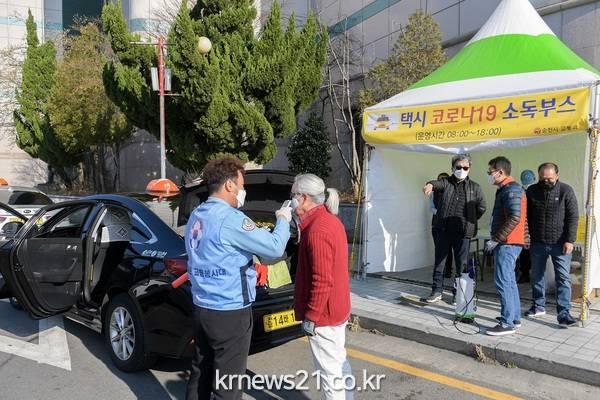 현재 순천시에서 영업중인 택시는 1178대(개인684, 법인494)이며, 시에서는 코로나19로 부터 시민들의 안전보호를 위해 마스크와 손 소독제등을 지원하고 있고, 사랑실은교통봉사대와 모범운전자회에서는 자발적으로 소독부스 2개소를 운영 중에 있다.
