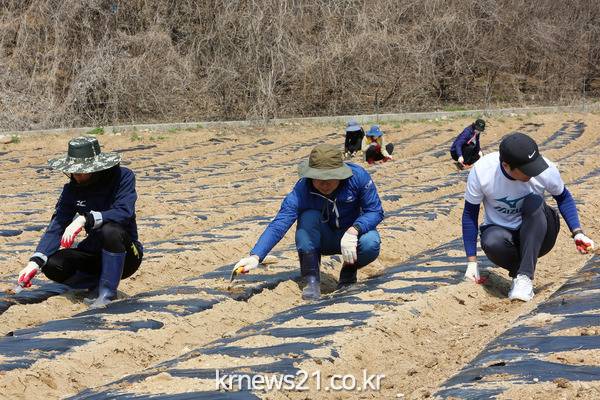 군 농업기술센터는 지난 7일부터 이달 9회에 걸쳐 감자 대량 재배농가에 일손 돕기를 지원하고 있다.