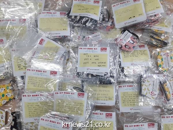 자원봉사자들은 지난 1일부터 자택에서 한땀 한땀 정성껏 재봉을 하여 어린이용 면마스크 464개를 직접 제작하였으며, 코로나 극복 응원 메시지지도 직접 작성하여 면마스크와 함께 남구에 소재한 민간 어린이집에 전달하였다.