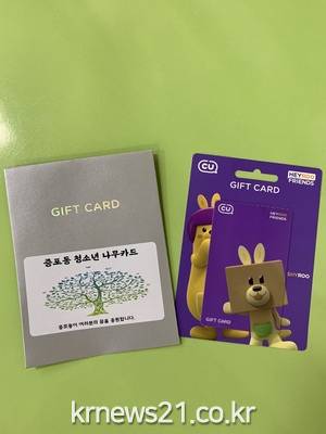 ▲ [사진제공 = 이천시]증포동지역사회보장협의체(이하 ‘증포동협의체’)는 지역사회 복지대상 청소년들을 응원하기 위한 사업인 증포동 청소년‘나무카드’지원 사업을 4월 20일부터 실시한다고 밝혔다.