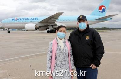 이렇게 귀하게 얻게된 한국산 진단키트는 토요일인 지난 18일 대한항공 여객기에 실려 볼티모어-워싱턴 국제공항에 도착했다. 호건 주지사와 한국계인 아내 유미 호건 여사가 직접 공항에 나가 '귀한 진단키트'를 맞았다.