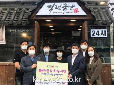 ▲ [사진제공 = 광주시]광주시 남부무한돌봄행복나눔센터는 지난 17일 역전국밥 초월본점에서 ㈜역전푸드 김명환 대표와 "광주시 홀몸 어르신 포장식사 지원을 위한 업무협약"을 체결했다.