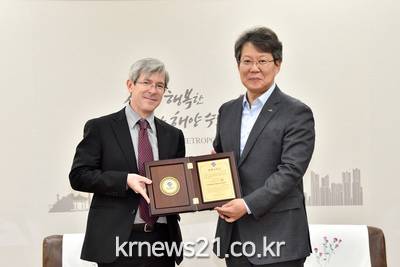▲ [사진제공 = 부산시]부산시(시장 오거돈)는 20일 오후 2시 부산시청에서 부산이 아시아 영화교육의 메카로 발전하는 데 기여한 공로로 부산아시아영화학교 교수이자 영화 <기생충> 영어자막 번역가인 달시 파켓(Darcy W. Paque, 48)을 명예시민으로 위촉했다고 밝혔다.