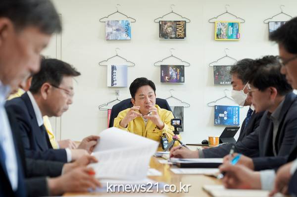 원희룡 제주특별자치도 도지사는 22일 오후 집무실에서 ‘재난긴급생활지원금(이하 재난 지원금) 대상자 선정 관련 긴급대책회의’를 주재했다.