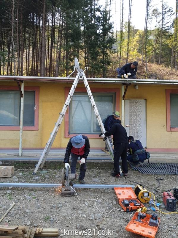 또한 정자리 마을의 지정기탁금으로 100만원과 마을공동체지원사업 보조금으로 관내 거주하는 3가구를 대상으로 주거환경 개선사업을 지원하고 적은 예산으로 많은 가구를 지원하기 위해 협의체 위원들은 집수리를 위한 재료를 구입하고 설치 작업은 재능기부로 진행하는 등 서로 힘을 보태며 어려운 시기를 함께 이겨나가고 있다.