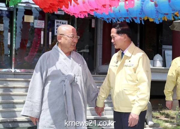 이재준 고양시장이 29일, ‘부처님 오신 날(4월 30일)’을 하루 앞두고 사찰을 방문해 코로나19 지역사회 감염 차단을 위한 방역수칙 준수와 협조 등을 당부했다. 방문 일정은 사회적 거리두기를 몸소 실천하기 위해, 사람이 많이 모일 30일 당일을 피해 하루 앞당겼다.