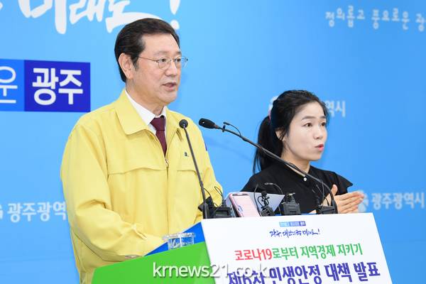 한편 광주시는 지금까지 5차에 걸쳐 ‘코로나19로부터 지역경제 지키기 민생안정대책’을 발표했다. 1차(3.15)로 소상공인과 자영업자 지원을 위한 무이자․무담보․무보증료 등 3無 특례보증 지원정책, 2차(3.19)로 시민부담을 덜어주는 공공요금 등 시민혜택 3대 대책, 3차(3.23)로 코로나19 피해가구에 대한 광주형 3대 긴급생계자금 지원대책, 4차(3.26)로 소상공인과 중소기업의 고용유지를 위한 고용유지 지원대책, 제5차로 생활형 공공일자리사업(4. 8)을 각각 발표한 바 있다.