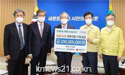 이날 기탁식에서 오정호 목사는 새로남교회 신도들을 대표해 코로나19로 인한 어려움을 극복하는데 써달라며 2억 원을 기탁했다.