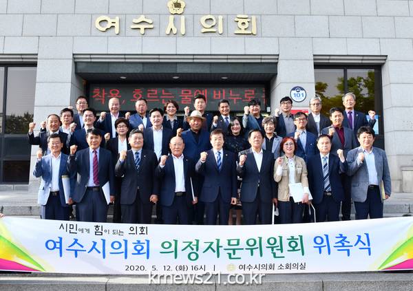의정자문위원회는 ‘여수시의회 의정자문위원회 설치 및 운영 조례’에 따라 전직 의원 4명, 대학교수 4명, 언론인 3명, 시민단체 5명, 법률·회계·건축·사회복지 전문가 4명 등 20명으로 구성됐다.
