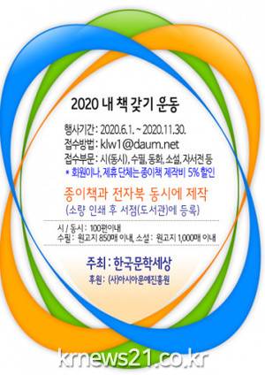 ▲ [사진=홍보포스터]한국문학세상(회장 김영일, 시인/수필가)과 사단법인 아시아문예진흥원(이사장 선정애)은 국민을 대상으로 ‘2020 내 책 갖기 운동’을 11월 30일까지 시행한다고 밝혔다.