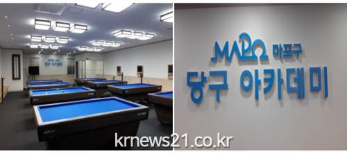 ▲ [사진제공 = 마포구]마포구(구청장 유동균)는 전국 최초로 어르신, 장애인, 여성, 청소년 등을 위한 마포구립 성산당구장을 설치하고 오는 6월 1일부터 개장해 당구아카데미 교실을 운영한다고 밝혔다.