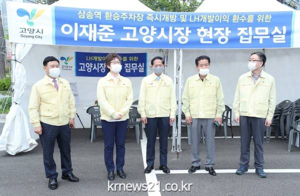 이재준 고양시장이 삼송역 환승주차장에 임시 현장집무실을 설치하고, 5월 11일부터 현장근무를 시작했다. LH 개발이익 환수를 위한 상징적인 강경조치로, 시민 불편을 외면하는 무분별한 LH개발방식에 경종을 울리기 위해서다.