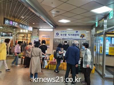 ▲ [사진제공 = 진천군]진천군은 서울시‧서울지하철공사와 협력해 서울지하철 천호역에서 25일부터 이틀간 생거진천 농산물 특별 판매 행사를 진행했다고 26일 밝혔다.