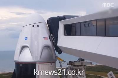 ▲ [사진출처 = MBC뉴스 캡처]미국의 민간 우주 시대의 포문을 열 것으로 기대를 한몸에 받던 스페이스X의 첫 유인 우주선 발사가 기상 악화로 연기됐다.