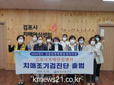 ▲ [사진제공 = 김포시]김포시 보건소(소장 강희숙) 치매안심센터는 지난 18일 만 50세 이상 퇴직 전문 인력인 간호사, 간호조무사, 사회복지사로 구성된 신중년 경력형 일자리사업인 ‘치매조기검진단’을 출범하고 올 연말까지 운영한다고 밝혔다.