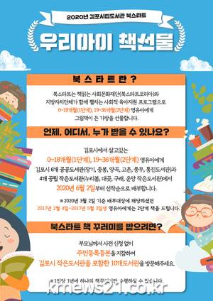 ▲ [사진=홍보포스터]김포시립도서관(관장 소영만)은 오는 6월 2일부터 0~36개월 영유아를 대상으로 그림책 두 권과 북스타트 가이드북이 든 책 꾸러미를 선착순으로 배부하는 북스타트 운동을 실시한다.
