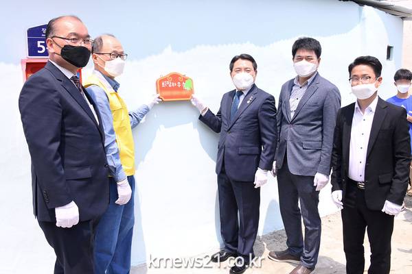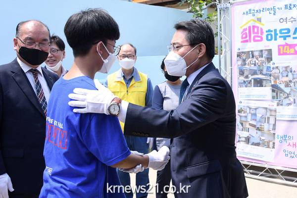 여수시(시장 권오봉)는 저소득 복지위기가구의 주거환경개선을 위해 오일허브코리아여수(주)(공장장 이영재)와 함께 ‘희망하우스 14호’를 준공하고 지난 28일 현판식을 가졌다.