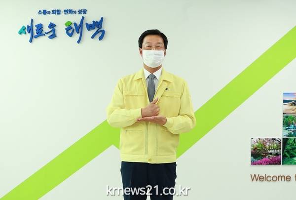 류태호 태백시장은 “코로나19 우리 함께 이겨냅시다!”라는 구호를 외치며, 시민 모두에게 응원 메시지를 전달했다.