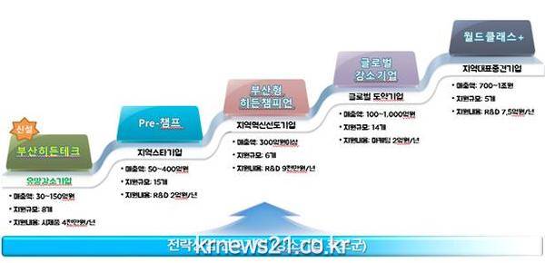 부산형 강소기업 성장사다리 육성은 「중소→중견→글로벌기업」으로의 성장생태계 구축을 통한 부산경제의 혁신성장과 지역발전을 주도할 강소기업 육성을 목적으로 하고 있다.