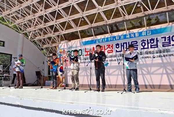 태백시는 노사 간 화합과 결의를 다지는 “2020 태백시 노사민정 한마음 화합 결의대회”를 30일(토) 오전 태백산 국립공원 일원(당골광장)에서 개최했다.