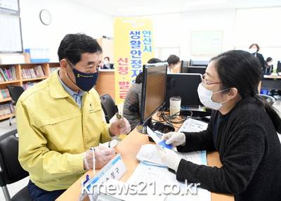 ▲ [사진제공 = 안산시]안산시(시장 윤화섭)는 거동이 불편한 취약계층 재난지원금의 원활한 지급을 위해 직접 찾아가는 방문 서비스를 제공한다.