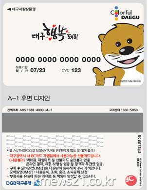 ▲ [이미지제공 = 대구시]대구시는 지역 자금의 역외유출을 막고, 지역경제 활성화를 위해 대구지역에서만 사용 가능한 모바일 앱 기반 선불카드인 ‘대구행복페이’를 6월 3일 정식 발행한다.